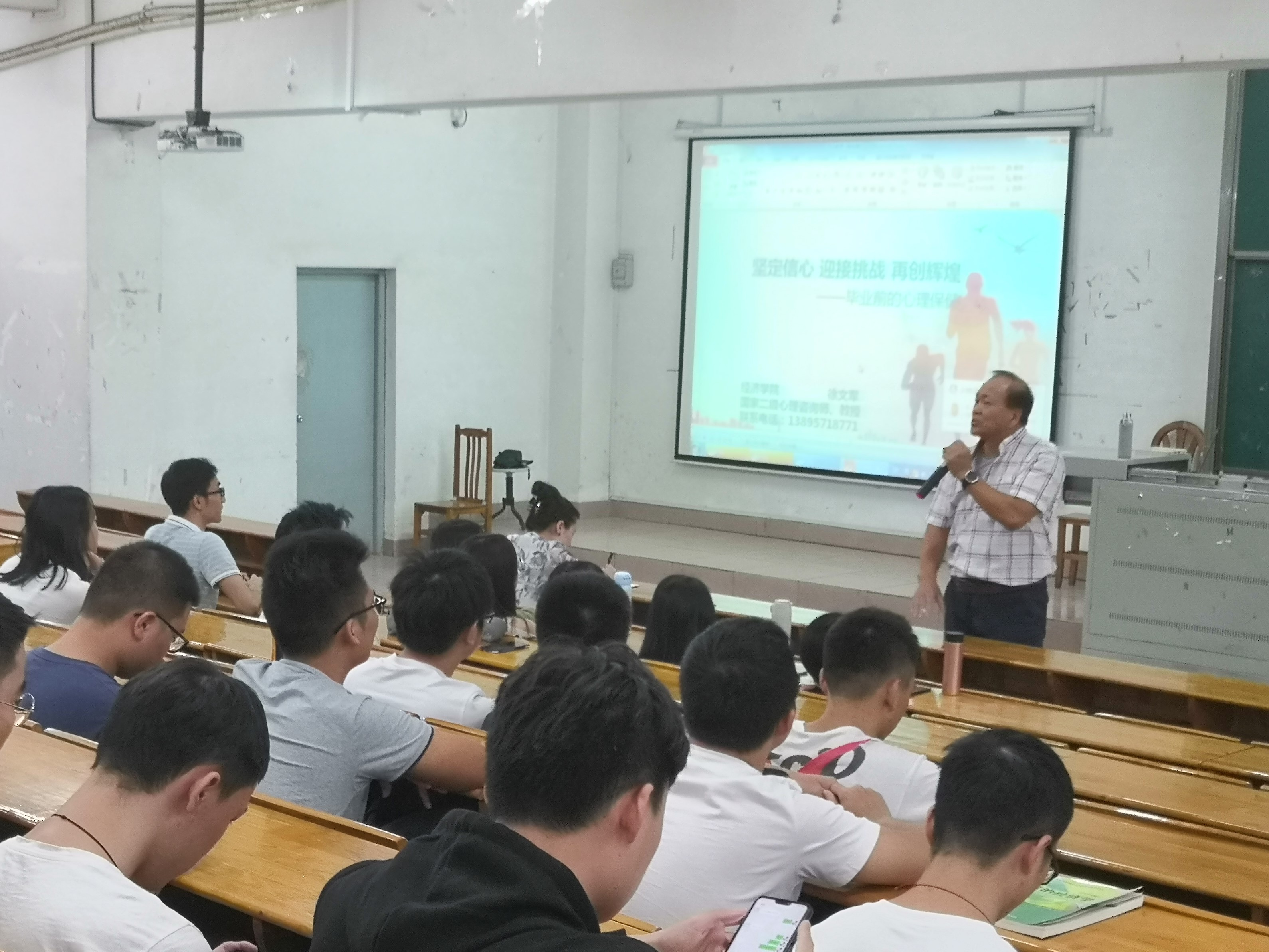 为维护毕业生思想稳定,关注毕业生心理健康,让2020届毕业生们带着一份良好的心态走出校园,更好地服务社会,经济学院于11月11日晚在一教111举办了一场“调整心态,迎接挑战”为主题的心理保健讲座。资深学生心理教育工作者徐文军教授主讲,经济学院党总支张雪梅书记、毕业班辅导员与全体毕业生参加了本次专题讲座。