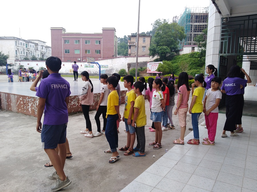 阳光明媚的清晨,学生陆续来到学校,各班的小朋友在志愿者老师的带领下有序地到操场集合。嘹亮的国歌在操场荡漾,2018年广州商学院金融学院三下乡师生见面会正式拉开帷幕。首先,由教学组负责人钟文浩发言,他为小朋友们介绍了此次三下乡活动的相关安排,并提出一些班级管理要求。随后,三下乡指导老师叶剑敏老师发表讲话,在老师幽默风趣的互动方式下,小朋友们与志愿者初次见面的羞涩逐渐褪去,一阵阵欢笑声撒满了鸟语花香的校园。最后,我们一起拍照,留住了这愉快难忘的"初相见"。